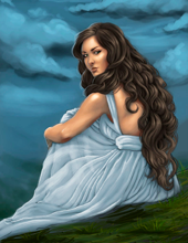 Внешний вид: высокая стройная зеленоглазая женщина с гордой осанкой, темными кудрями, спускающимися ниже талии, одевается в белое платье.
